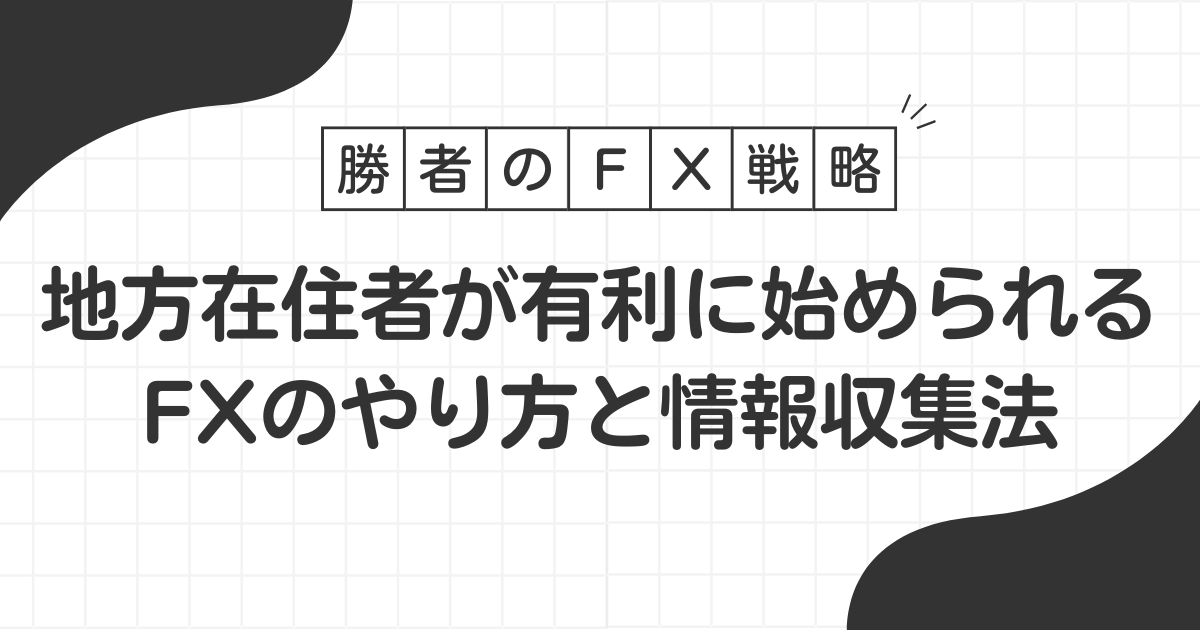 地方に住んでいると、投資や資産運用の情報って都市部より少ないと感じませんか。特にFXについては「難しそう」「東京の人じゃないと無理」なんて思っている方も多いかもしれません。