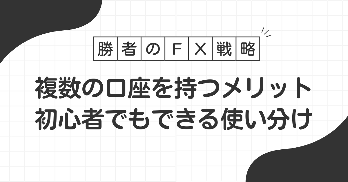 FXを始めたばかりの頃は、一つの口座でトレードをしている方がほとんどでしょう。でも実は、複数の口座を使い分けることで、より効率的にトレードできるようになるんです。